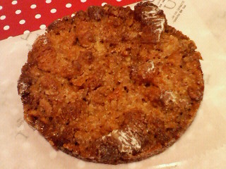 バターとカラメルのいい匂い。バリンッと一口かじってバリバリもぐもぐ...あ、あまい。甘い。いや、甘ったるい。半分食べたぐらいで飽きてました。一口目が一番おいしいかも。クルミも入っるところはナイスですね!もう少し甘さ控えめだったら、モロあたし好みのクロカンでした。おしいぽーる!!