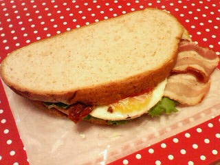 甘い系よりなんだかサンドウィッチが食べたくなってグラハムベーコンエッグを購入。これが一番おいしそうだった!
